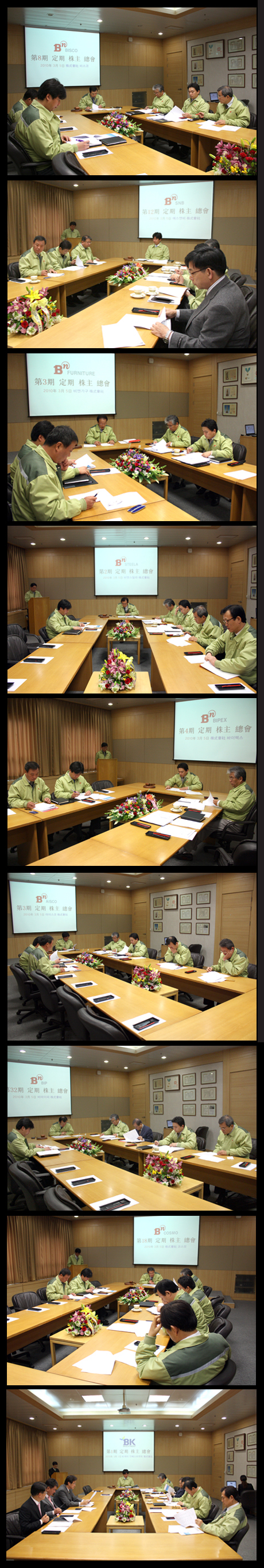 2010³â 3¿ù 5ÀÏ(±Ý) BN±×·ì º»»ç 11F ´ëȸÀǽǿ¡¼ BN±×·ìÀÇ °¢ °è¿»ç Á¤±âÁÖÁÖÃÑȸ°¡ °³ÃֵǾú½À´Ï´Ù.